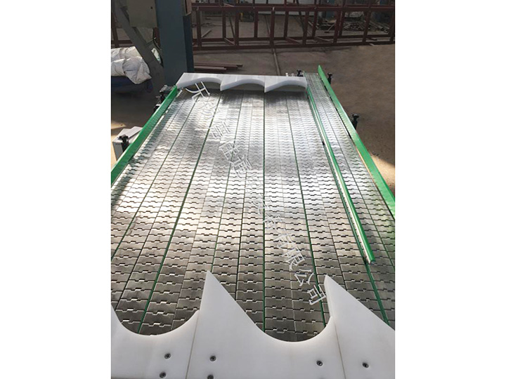 2、链板有不锈钢和工程塑料等材质、规格品种繁多,可根据输送物料和工艺要求选用,能满足各行各业不同的需求。